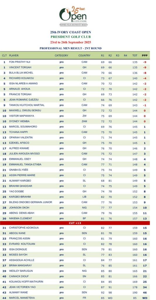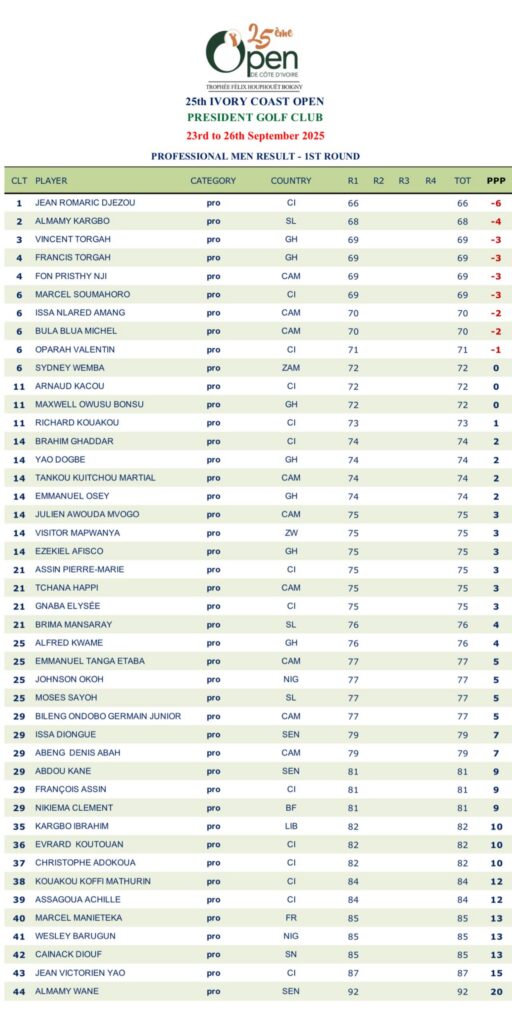 Résultats - Open de Côte d’Ivoire 2025